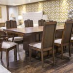 Panama Dining Table Set is for 8 Chairs, made of solid wood the dining top is also made of Engineered Wood top size (4ft x 8ft). Padistal base elegant design